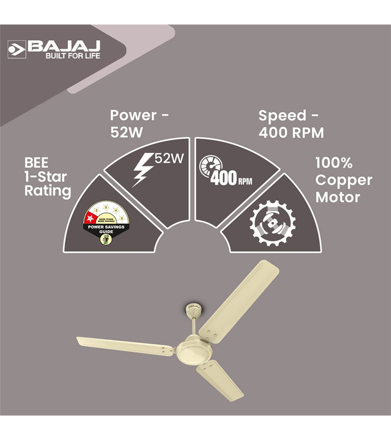 Bajaj Durato 12S1 1200mm (48 inch) Ceiling Fan Bajaj Durato 12S1 Upgrage your space with stylish fan. Designed for 50% more lasting Air comfort with ThermaTufff Technology. Bring home the perfect fan for your comfort. Product Details: